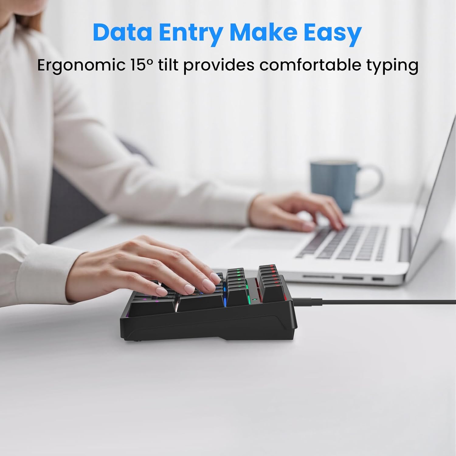 Mechanical Numeric Keypad 34 Keys | RGB Backlit Wired Number Pad | Portable Numeric Input Device for Office and Data Entry